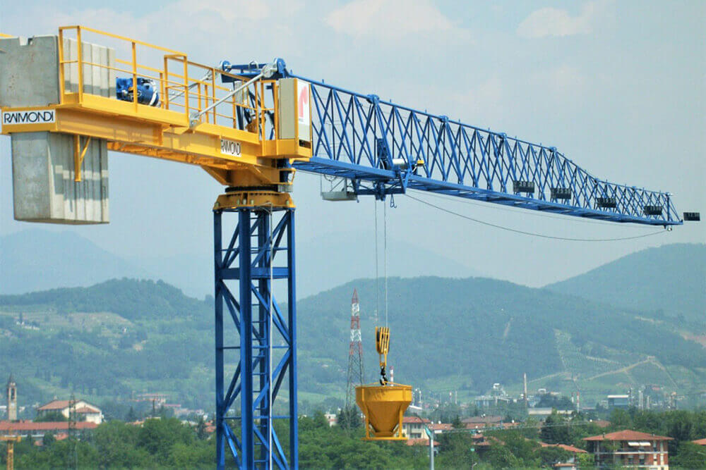 Il parco gru a noleggio Ormedil comprende le gru Raimondi, che offrono grande versatilità data anche dalla possibilità di accorciare o allungare il braccio rapidamente, con lunghezza braccio a partire da 17 mt.
